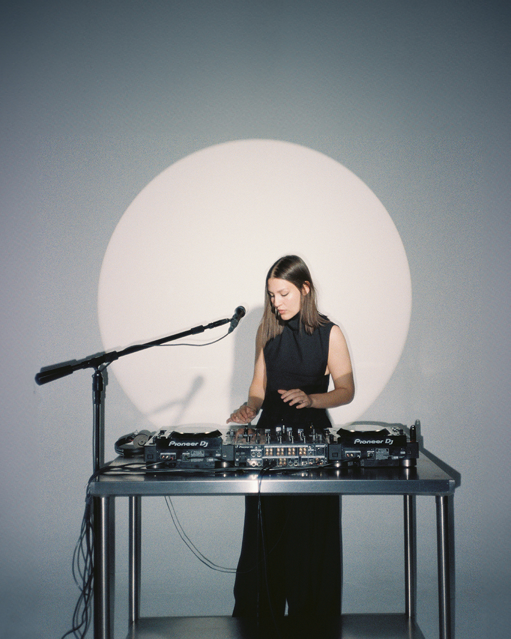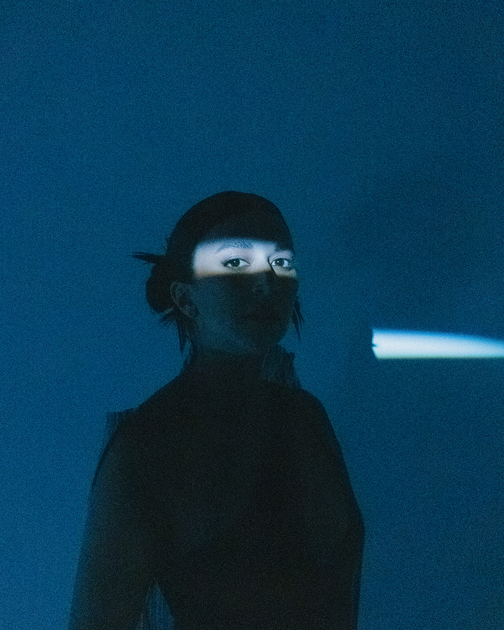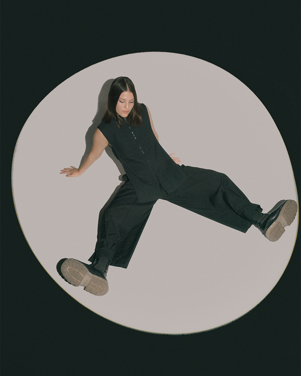 Penumbra is an electronic record label based in Mexico. Inspired by vintage space imagery and female pioneers of electronic music, we crafted a visual and sonic identity. For their on-site live production, we designed a minimalist set, capturing the interplay of light and shadow reminiscent of an eclipse. This visual theme was unified by a styling approach that embraced androgyny and featured sharp, all-black cuts.