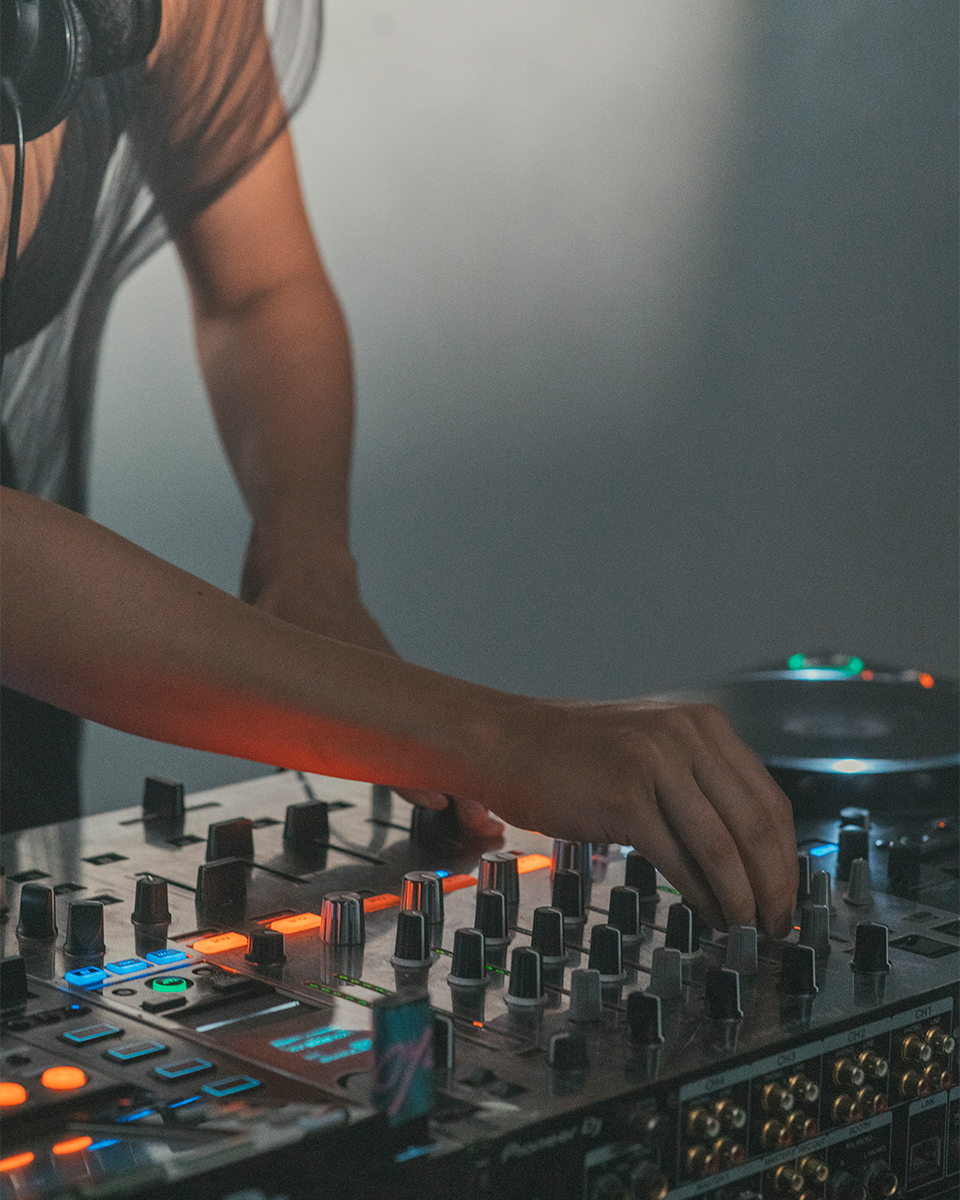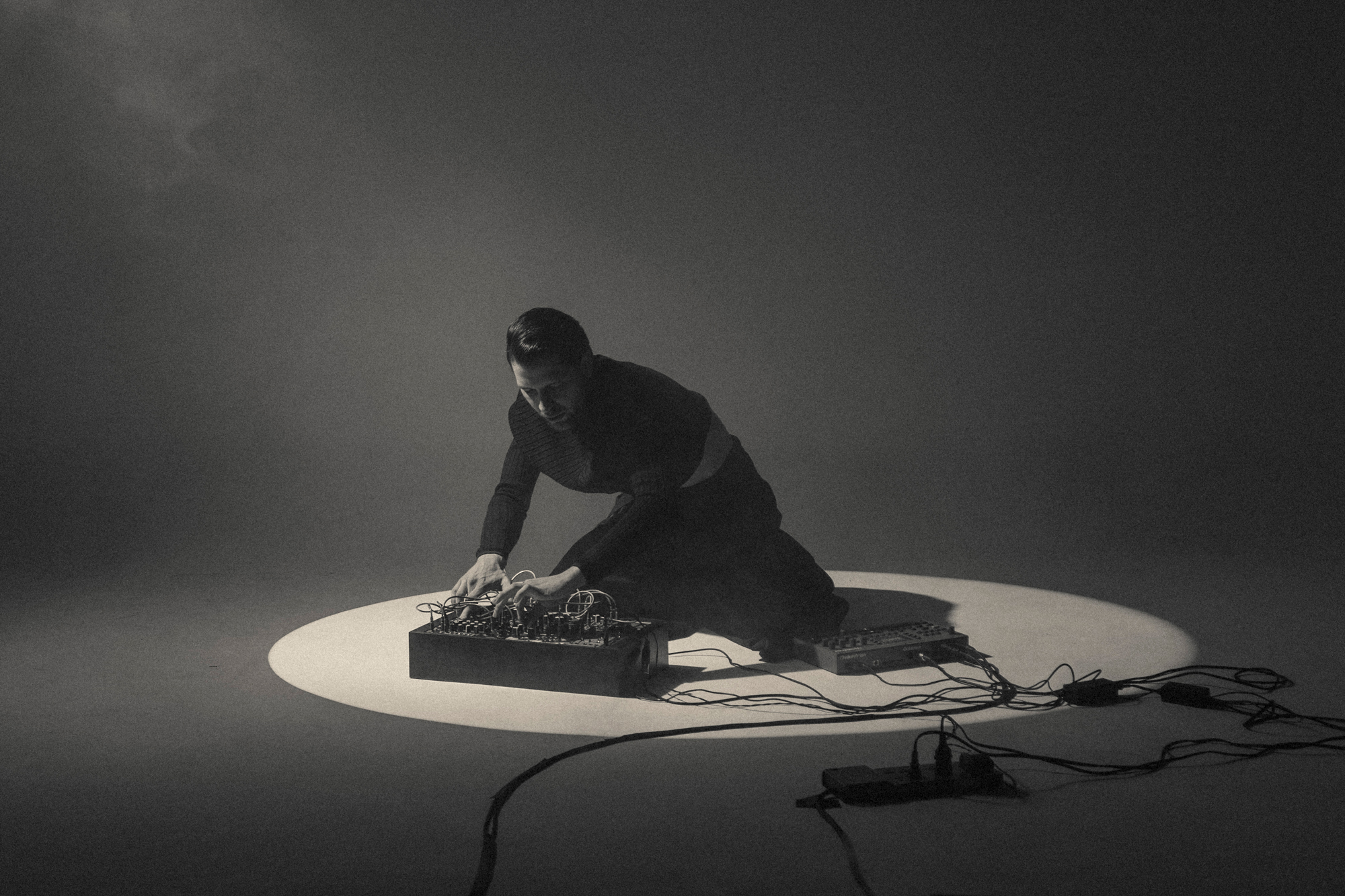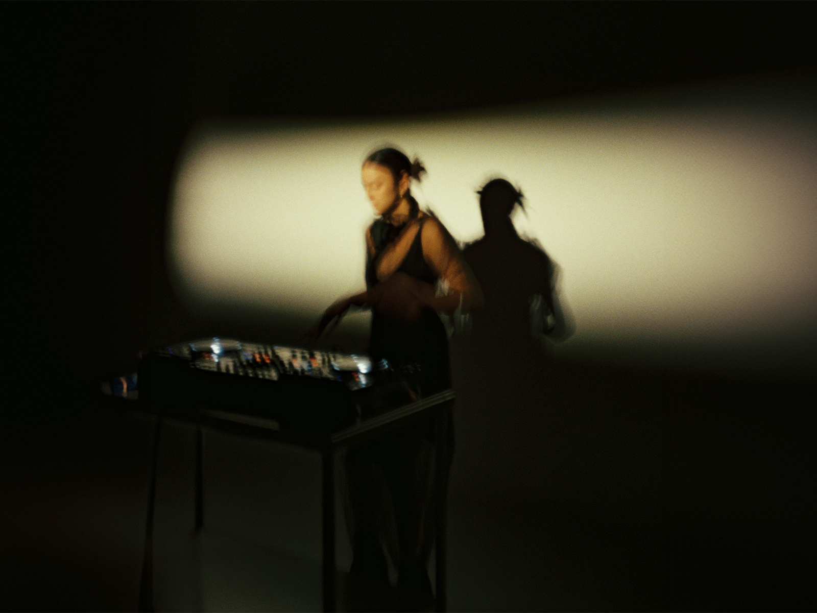 Penumbra is an electronic record label based in Mexico. Inspired by vintage space imagery and female pioneers of electronic music, we crafted a visual and sonic identity. For their on-site live production, we designed a minimalist set, capturing the interplay of light and shadow reminiscent of an eclipse. This visual theme was unified by a styling approach that embraced androgyny and featured sharp, all-black cuts.
